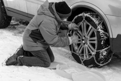– à défaut, vous devez devez disposer dans le véhicule d’un système anti-dérapant amovible, soit 2 chaines à neige, soit 2 chaussettes à neige : ces équipements permettent une circulation à très faible allure dans des situations pour lesquelles un pneu classique n’est plus adapté.